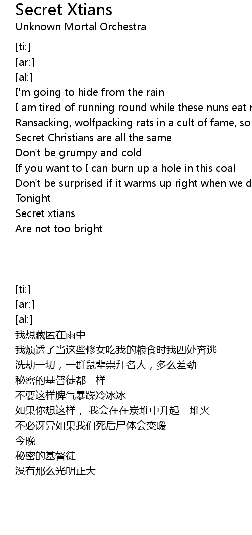 | [01:18.72] | Secret xtians |