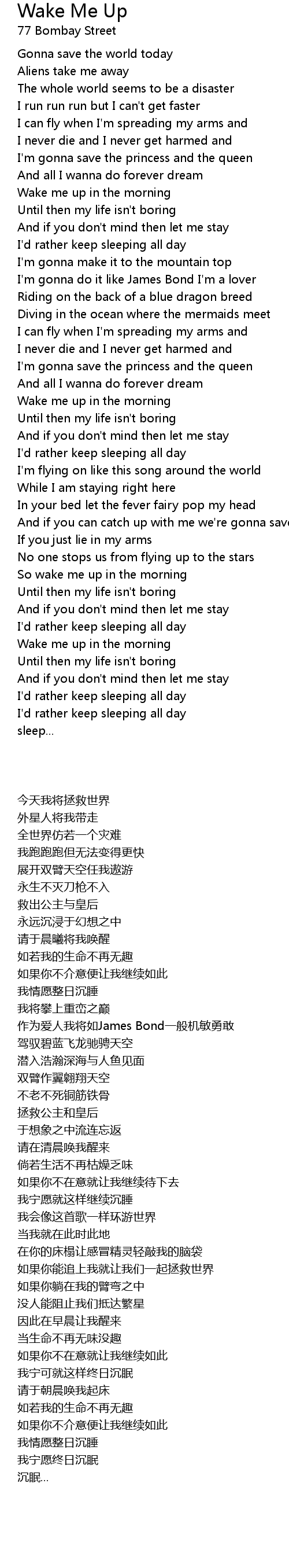 Wake me up in the morning |