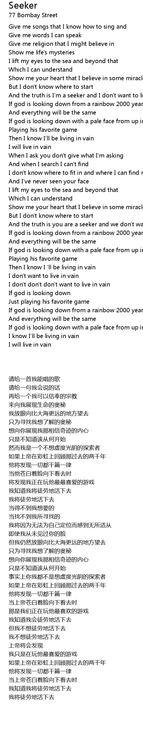 And the truth is you are a seeker and we don't want to live in vain |