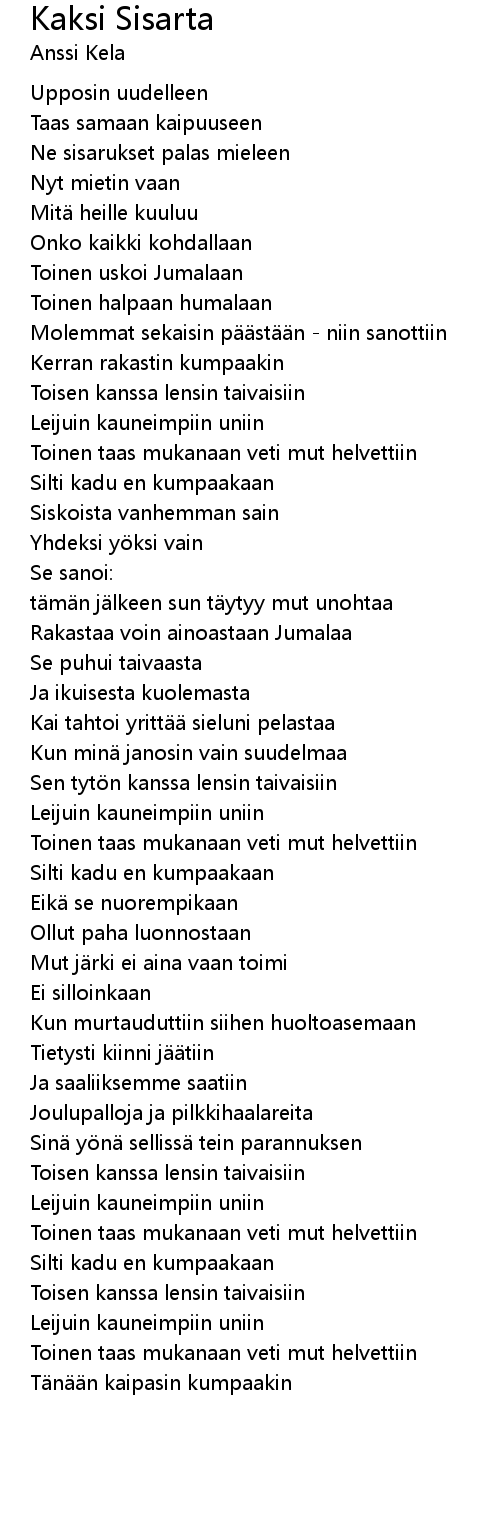 | 歌曲 | Kaksi Sisarta |