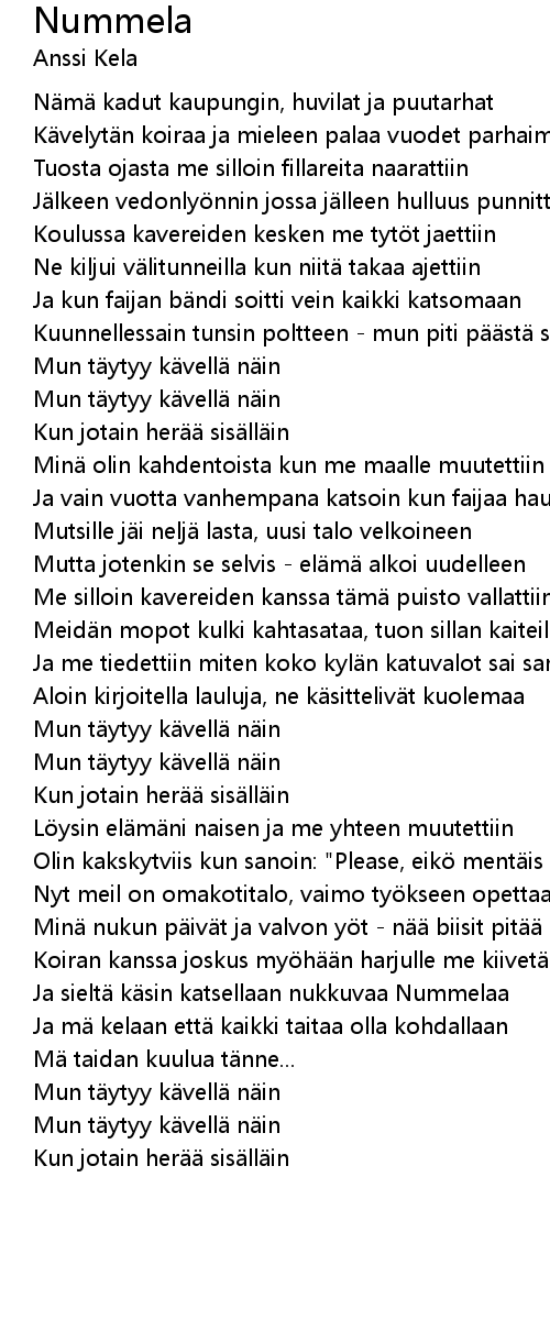 | 歌曲 | Nummela |
