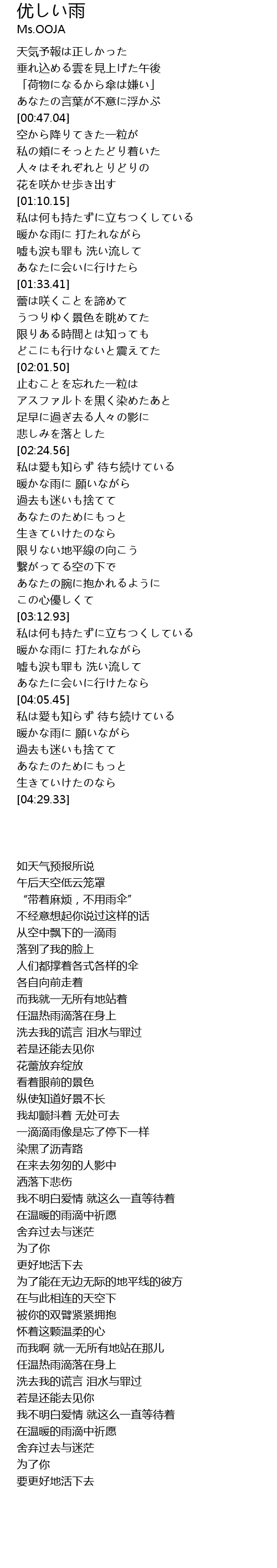 | [03:49.34] | 暖かな雨に 打たれながら |