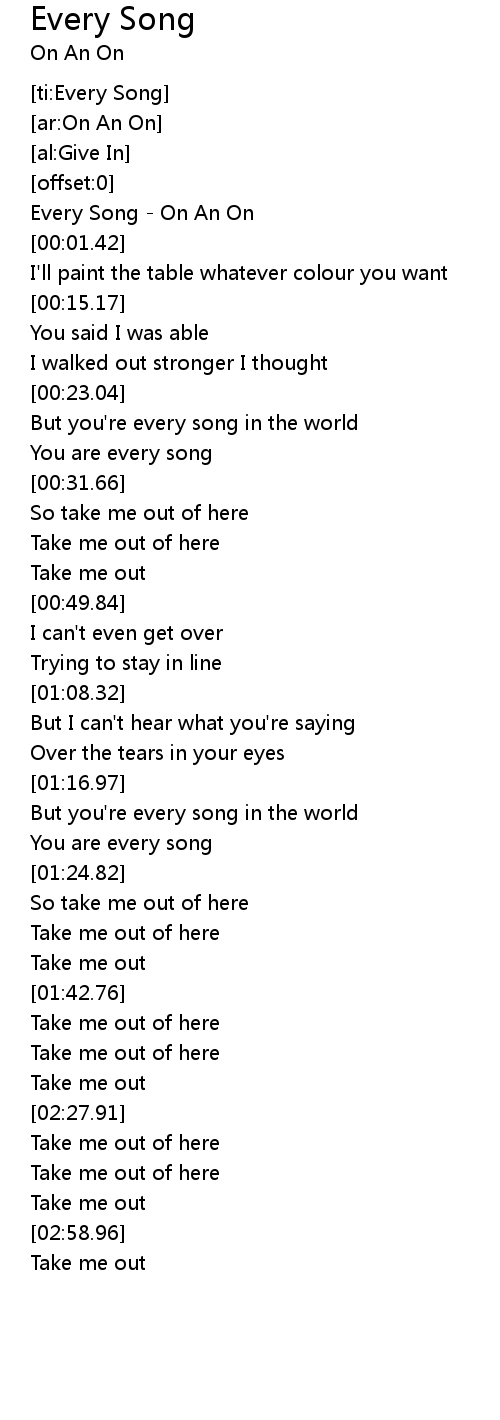 | [00:10.25] | I'll paint the table whatever colour you want |