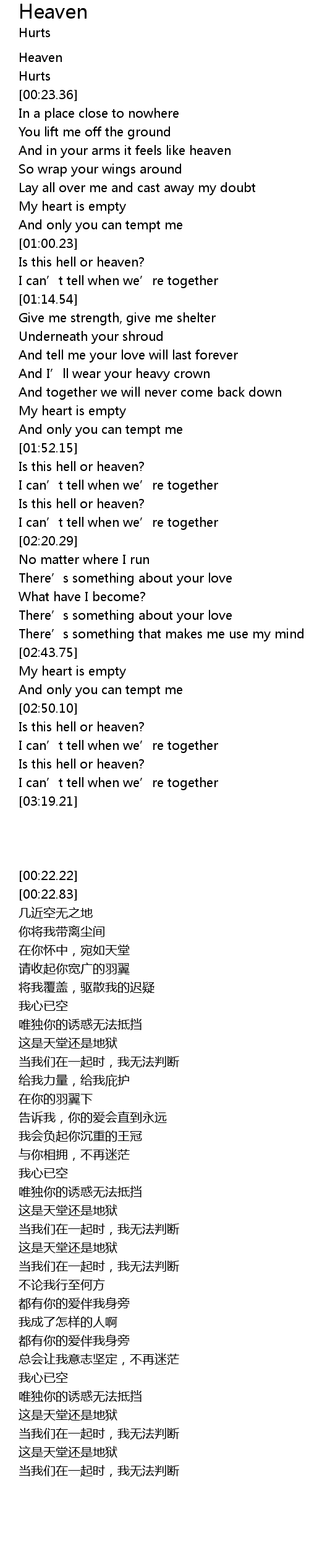 | [00:22.22] | Heaven |