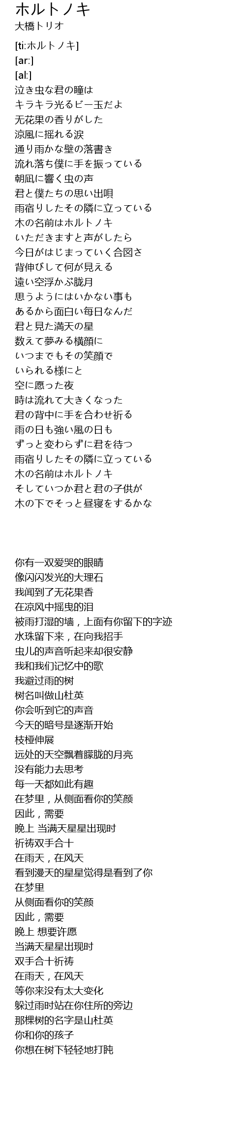 | [04:32.68] | 木の下でそっと昼寝をするかな |