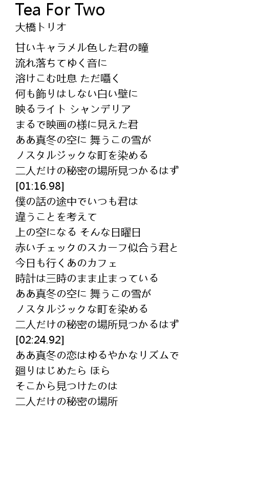 | [01:05.56] | 二人だけの秘密の場所見つかるはず |