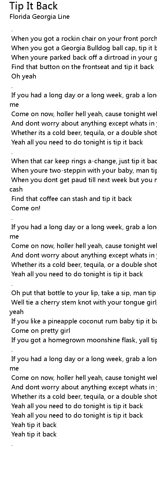 Oh put that bottle to your lip, take a sip, man tip it back |