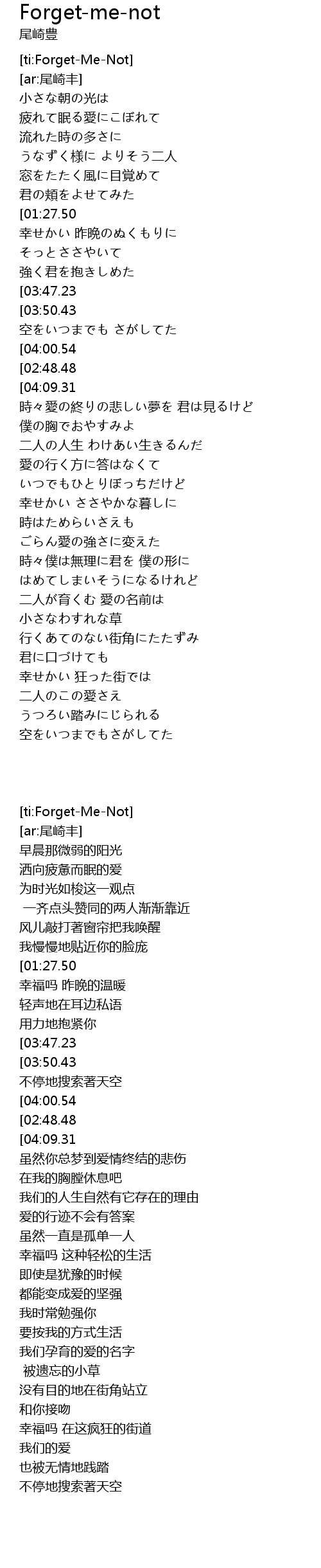 | [01:21.89][04:09.31] | 小さなわすれな草 |