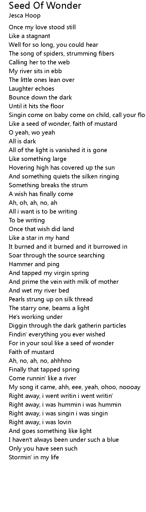 Like a seed of wonder, faith of mustard |