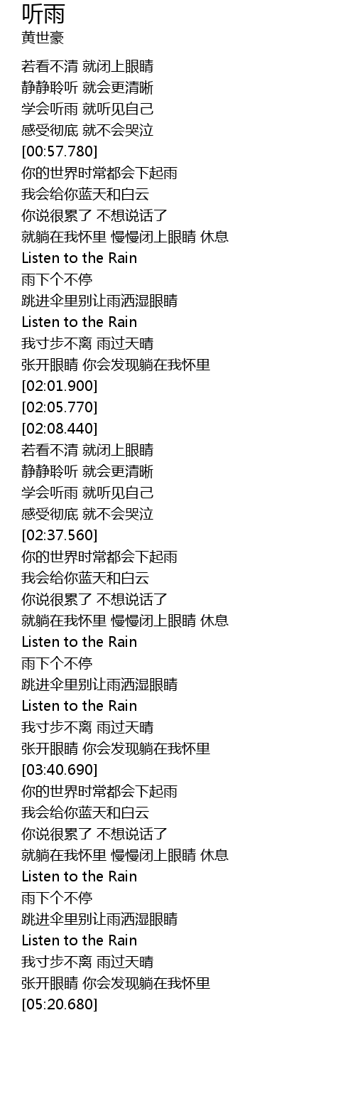 | [03:23.370] | Listen to the Rain |