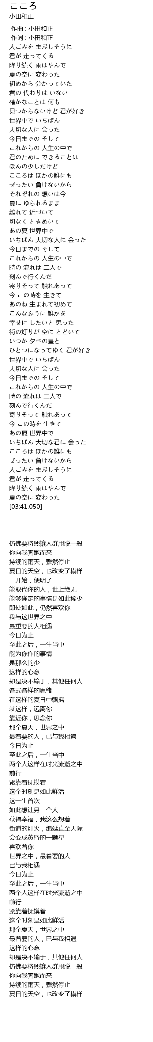 | [00:01.00] | 作词 : 小田和正 |