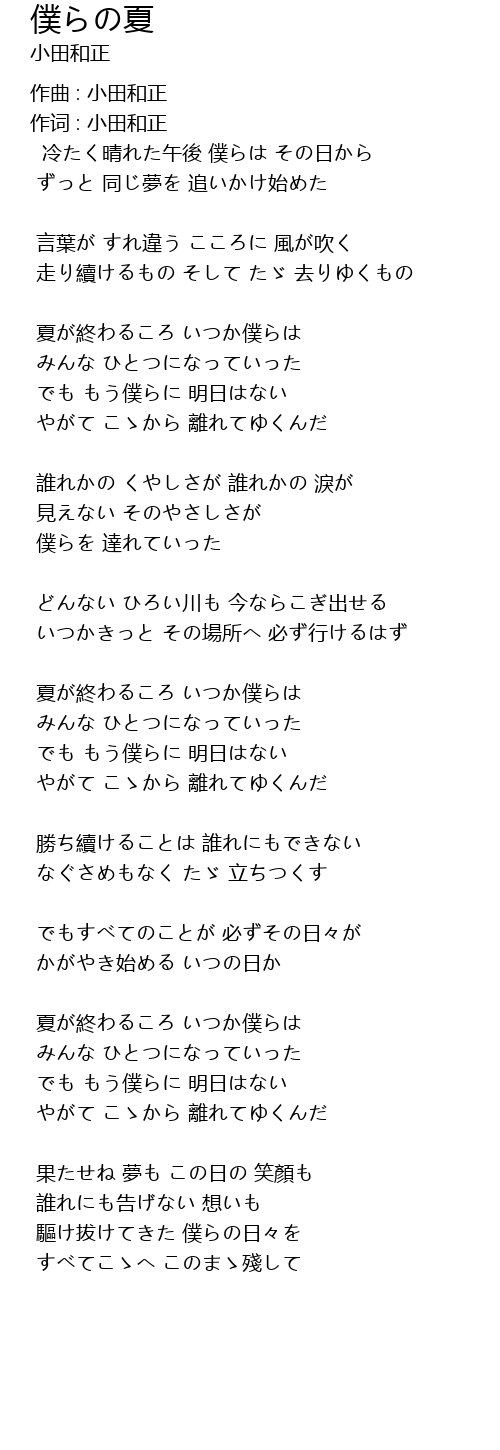 | 作词 : 小田和正 | |