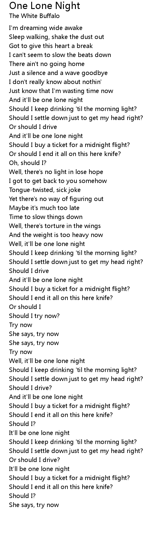 Well, it'll be one lone night |