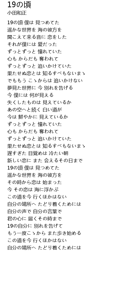 | 19の頃 僕は 見つめてた | |