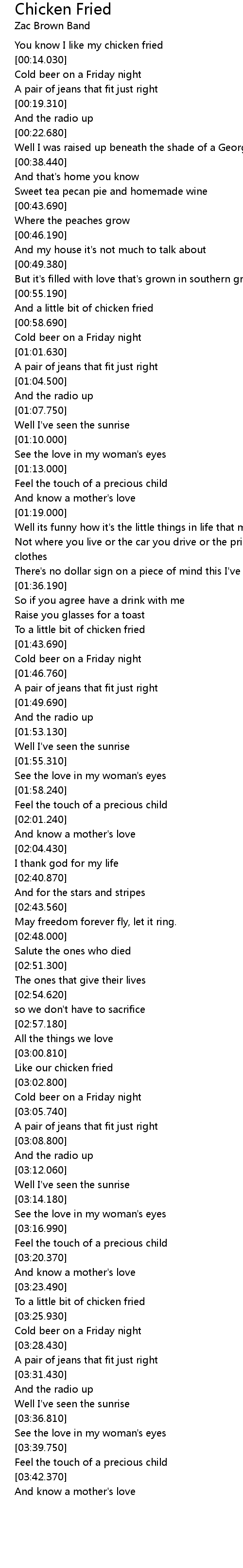 You know I like my chicken fried |