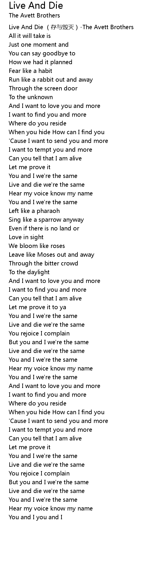 | [00:00.00] | Live And Die (存与毁灭)-The Avett Brothers |
