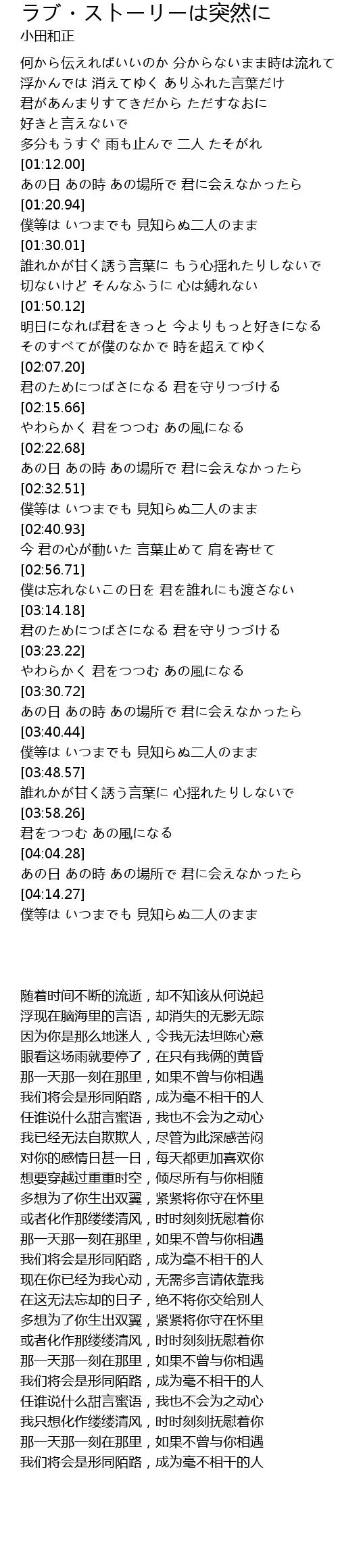 | [04:14.97] | 僕等は いつまでも 見知らぬ二人のまま |