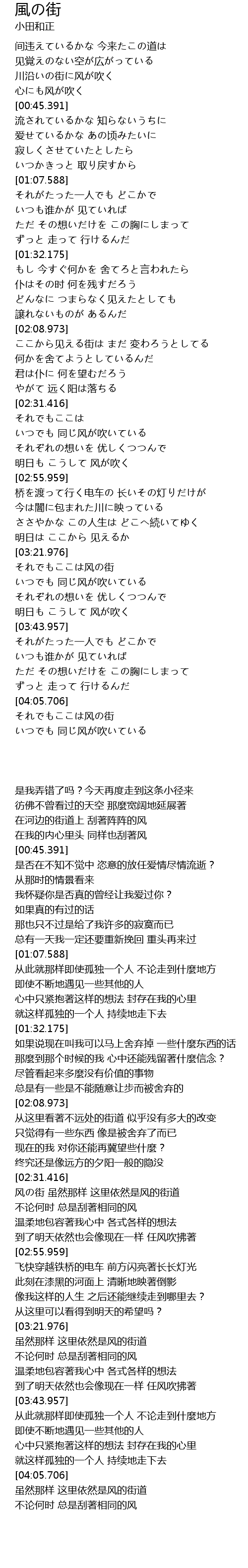 | [03:22.643] | 虽然那样 这里依然是风的街道 |