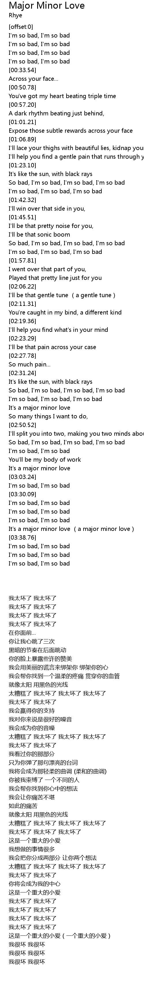 | [03:35.96] | It's a major minor love (a major minor love) |