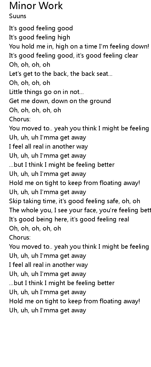 It's good feeling good, it's good feeling clear