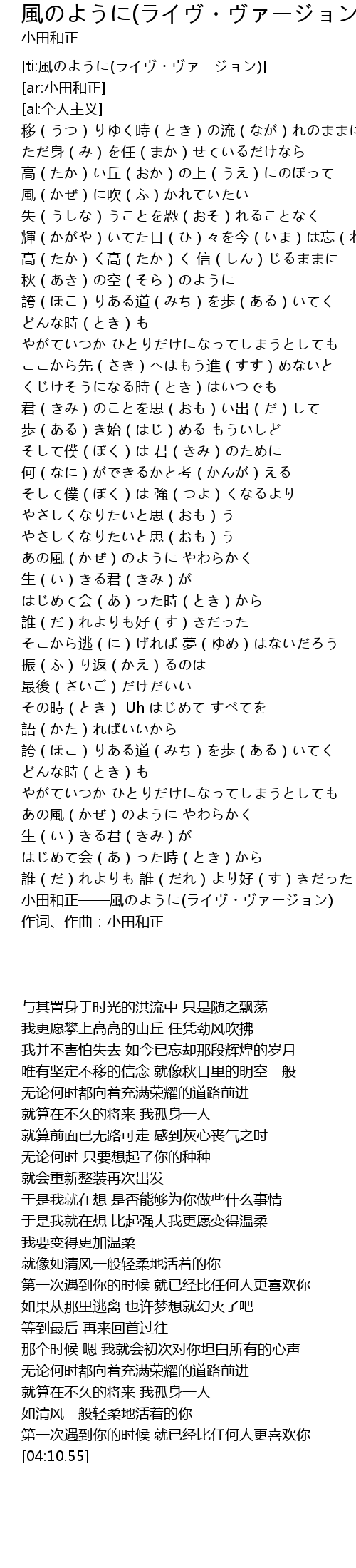 | [ti:風のように(ライヴ・ヴァージョン)] | |