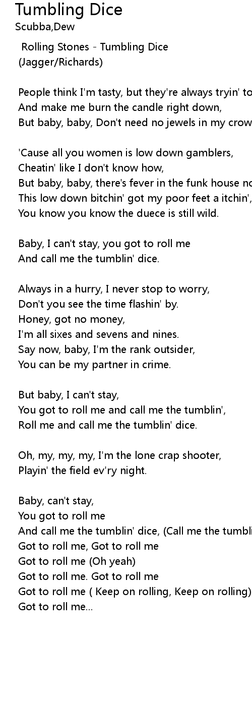 | And call me the tumblin' dice, (Call me the tumblin') | |