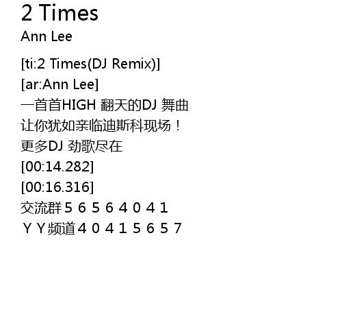 | [ti:2 Times(DJ Remix)] | |