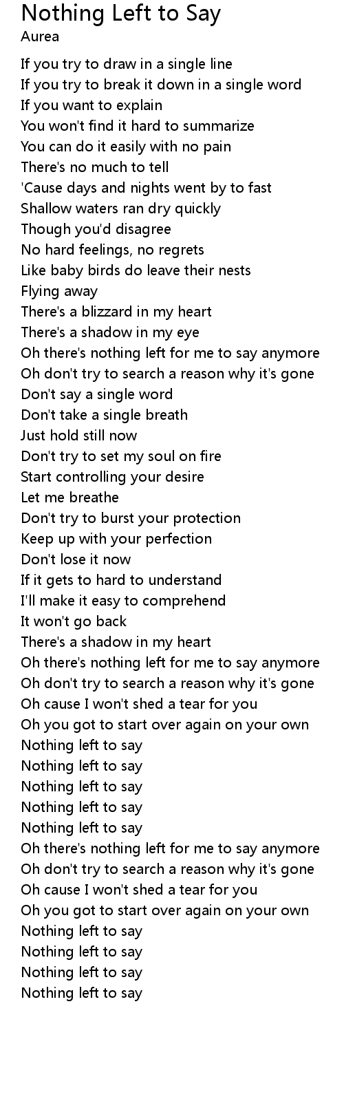 Oh there's nothing left for me to say anymore |