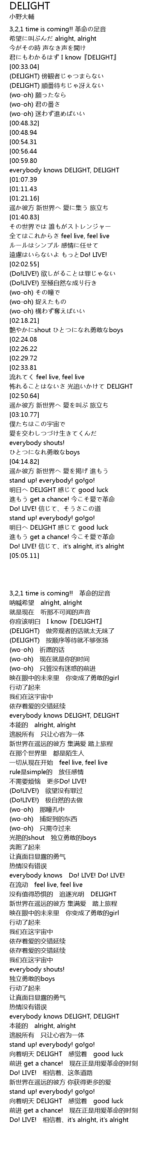 | [01:03.99] | everybody knows DELIGHT, DELIGHT |