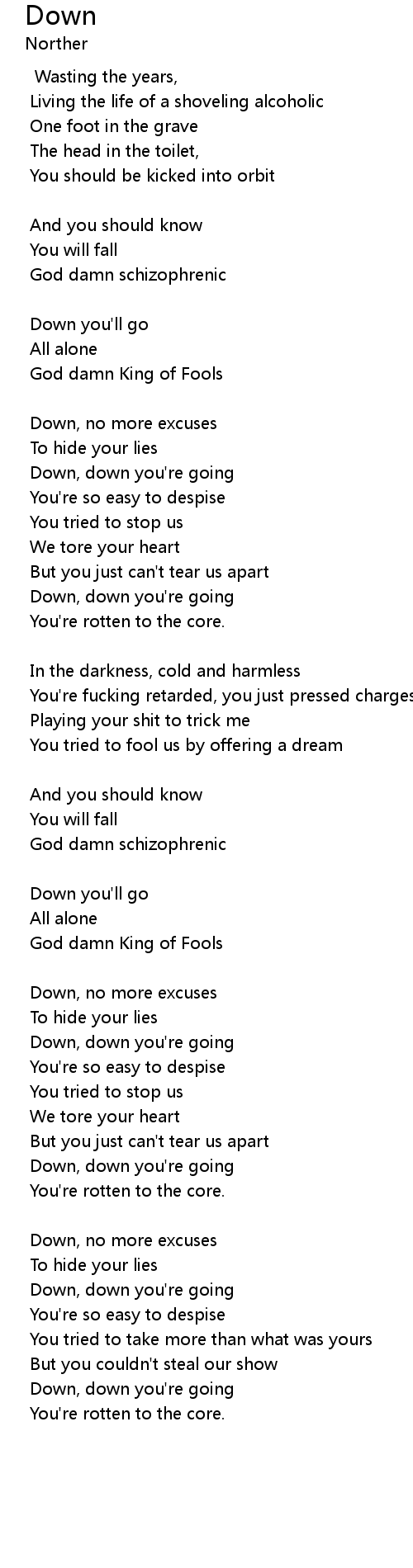 | Down, no more excuses | |