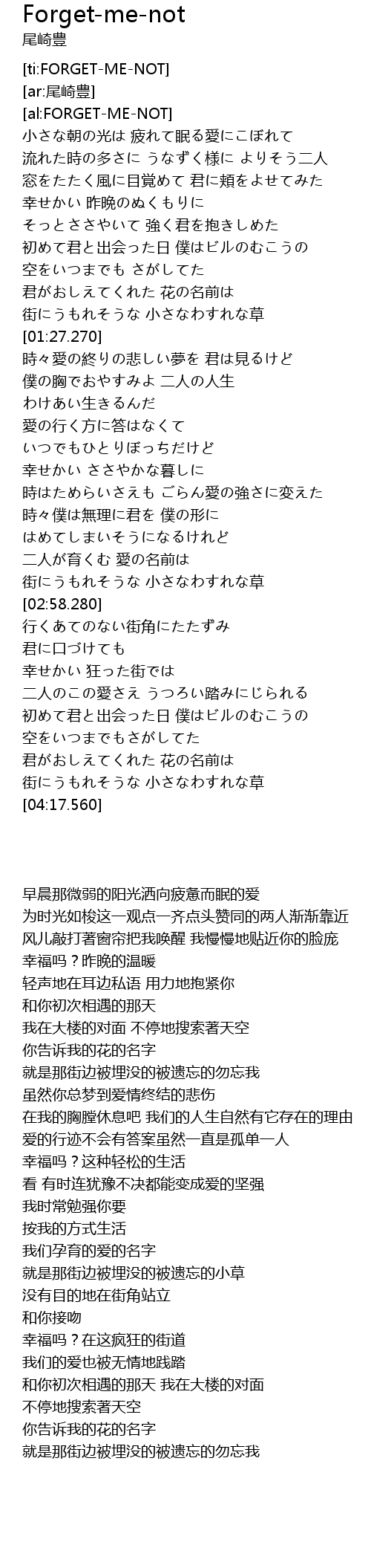 | [02:48.630] | 街にうもれそうな 小さなわすれな草 |