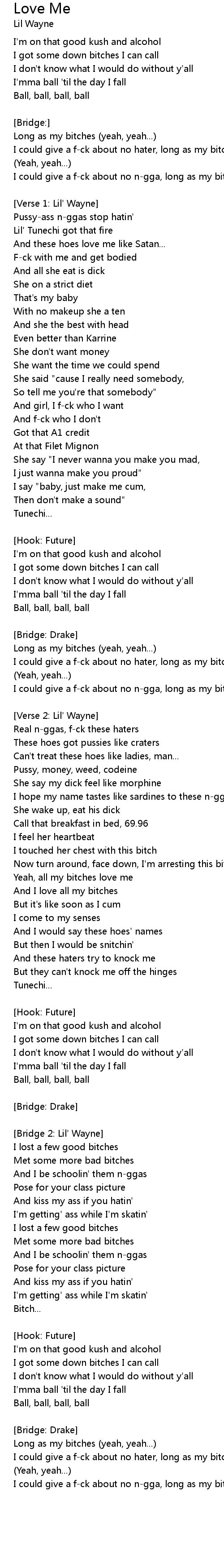 | I could give a f-ck about no n-gga, long as my bitches love me | |