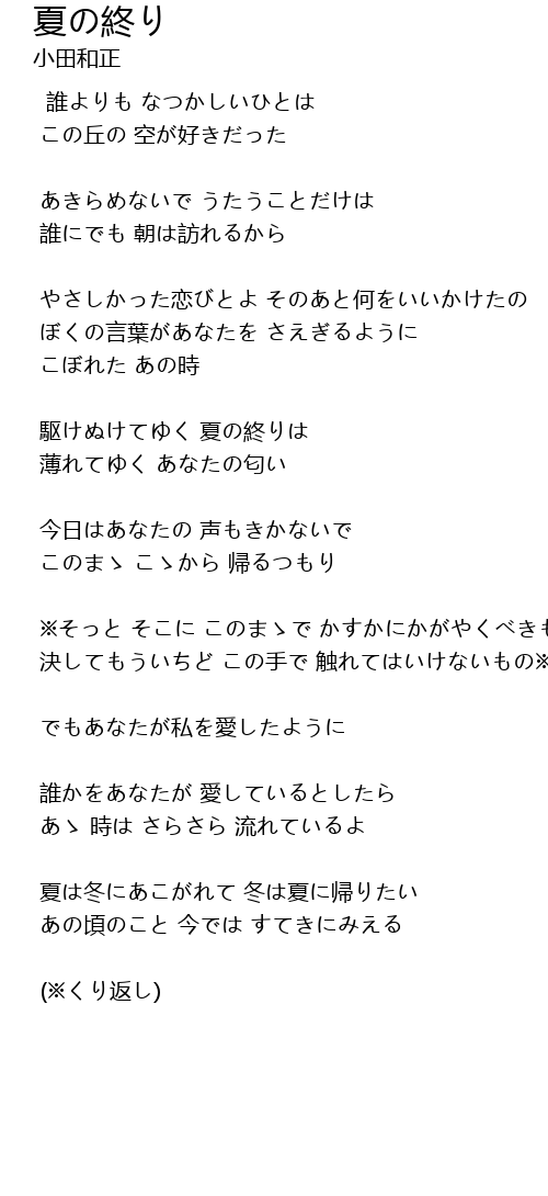 | 歌曲 | 夏の終り |
