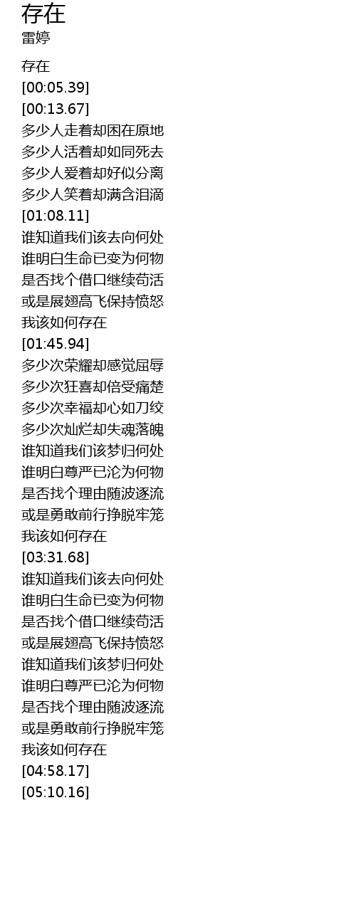 | [04:51.71] | wǒ gāi rú hé cún zài |