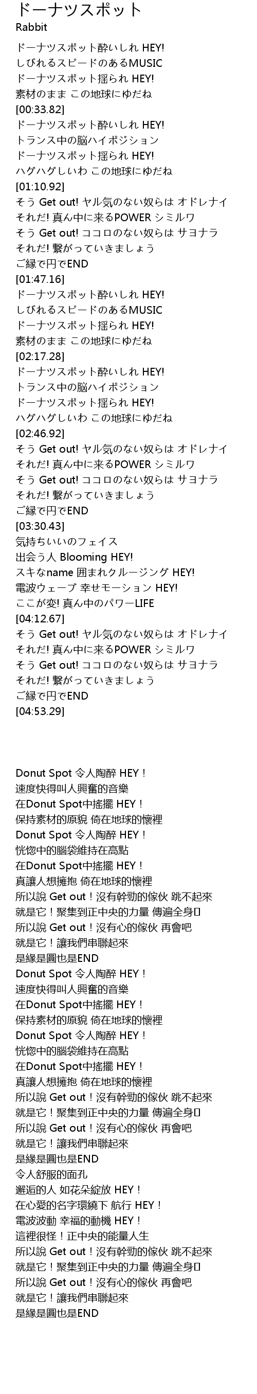 | [00:52.48] | ドーナツスポット揺られ HEY! |