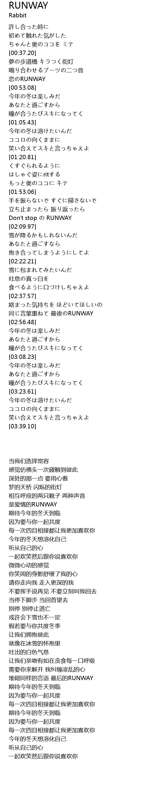 | [02:49.21] | tong yan ye zhong zui hou RUNWAY |