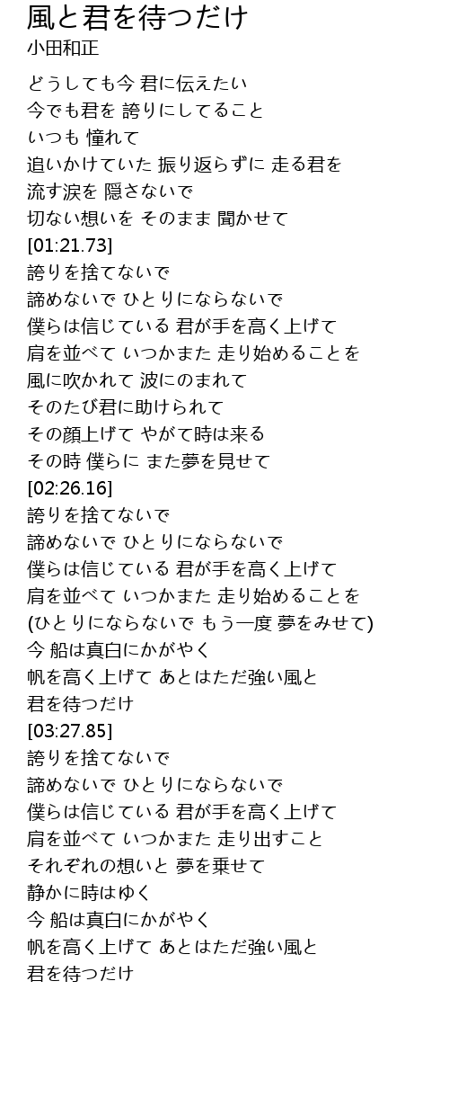 | [01:56.96] | 風に吹かれて 波にのまれて |