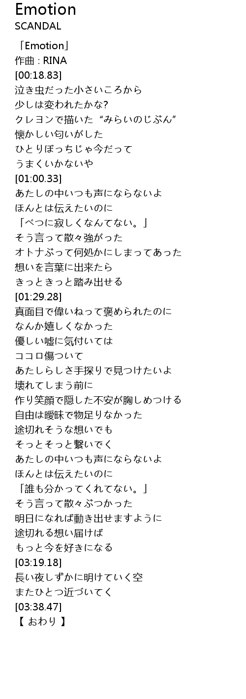 | [02:51.59] | あたしの中いつも声にならないよ |