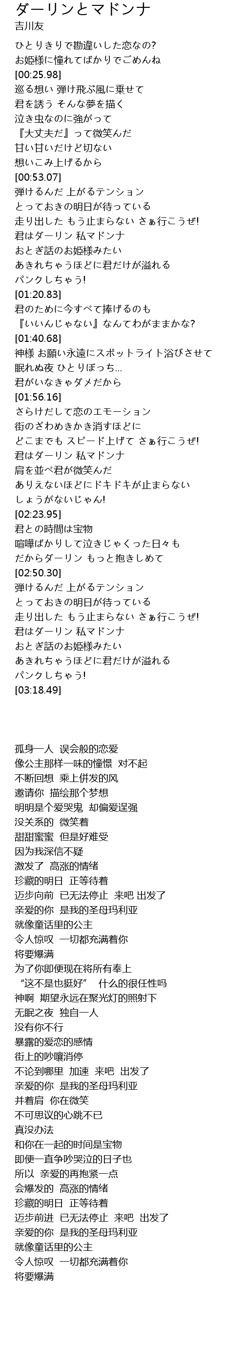 | [03:03.08] | 君はダーリン 私マドンナ |