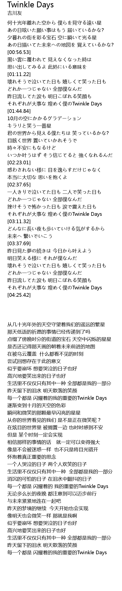 | [04:14.20] | dà shì huáng pú Twinkle Days |
