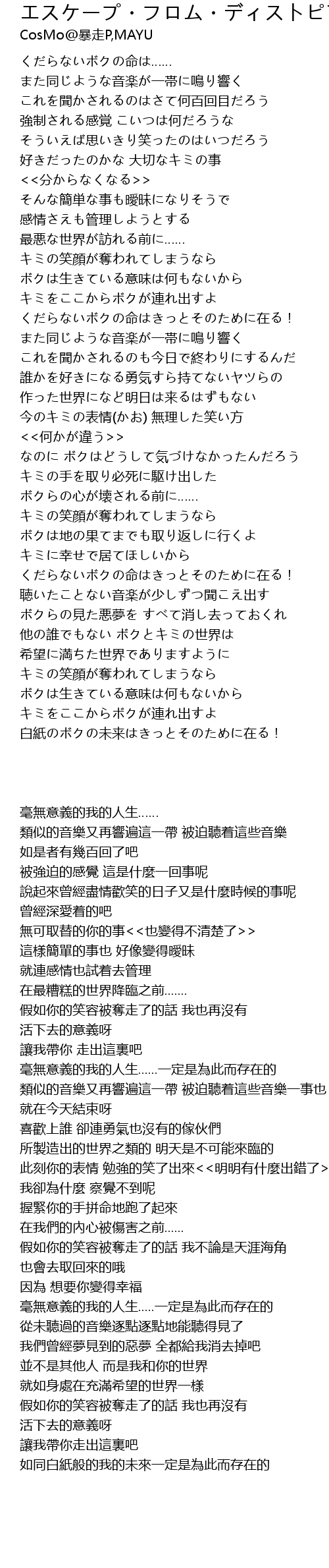 | [03:16.15] | 如同白紙般的我的未來一定是為此而存在的 |