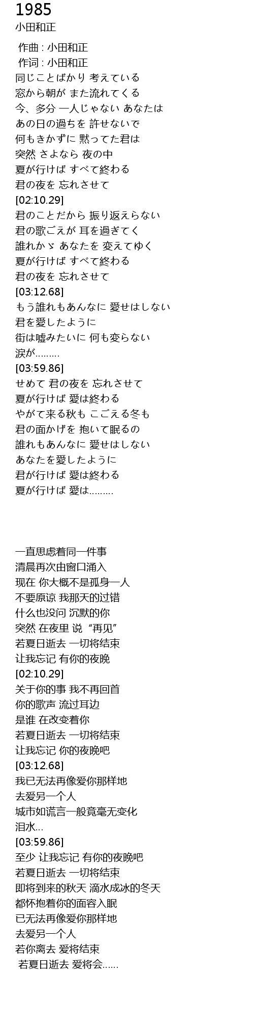 | [04:16.99] | 夏が行けば 愛は終わる |