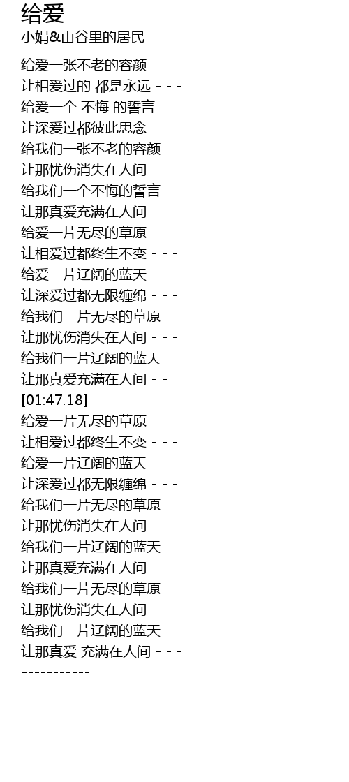 | [01:42.01] | 让那真爱充满在人间 - - |