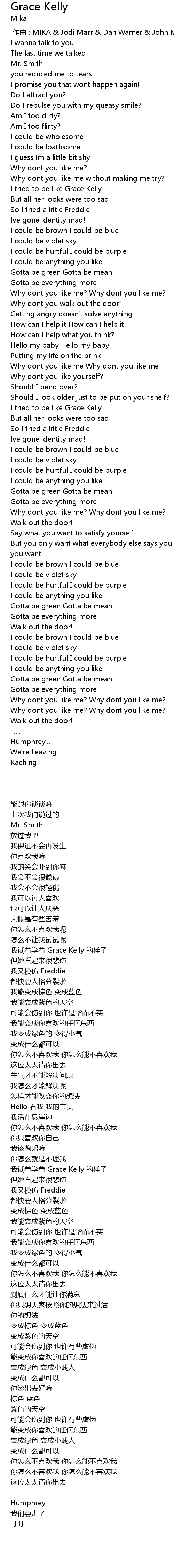 | 歌曲 | Grace Kelly |