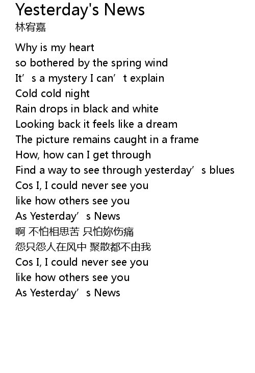 | [01:36.740] | Find a way to see through yesterday' s blues |