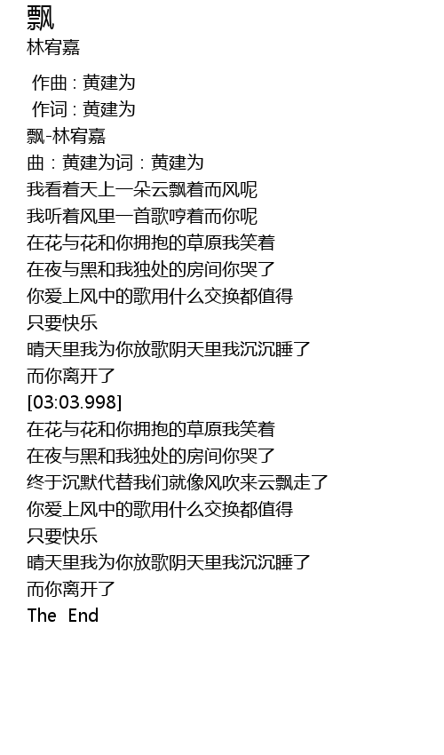 | [04:07.165] | 终于沉默代替我们就像风吹来云飘走了 |