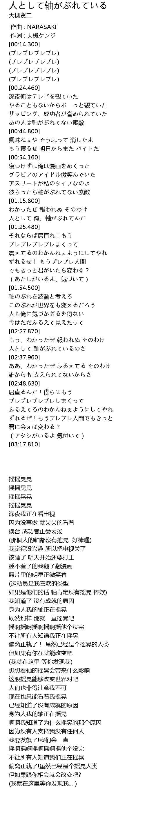 作词 : 大槻ケンジ |