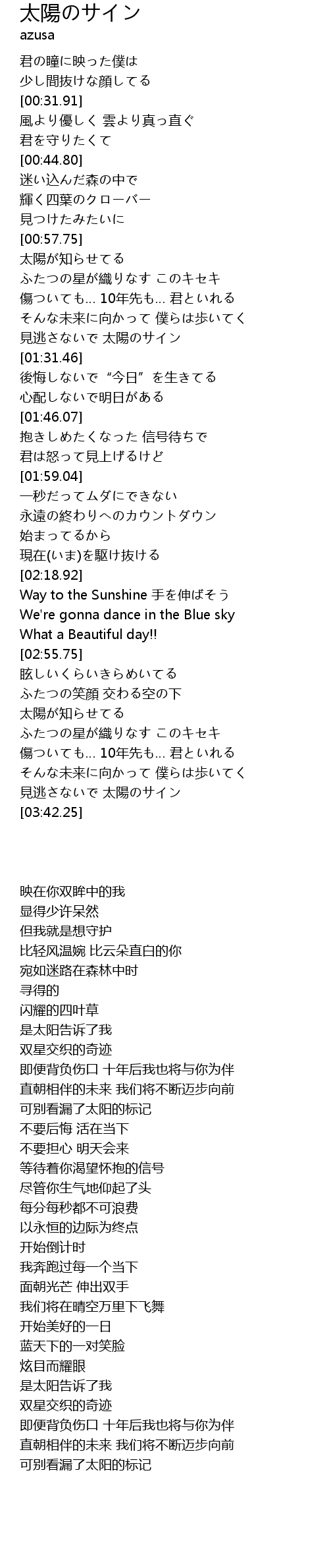 | [03:38.30] | 見逃さないで 太陽のサイン |