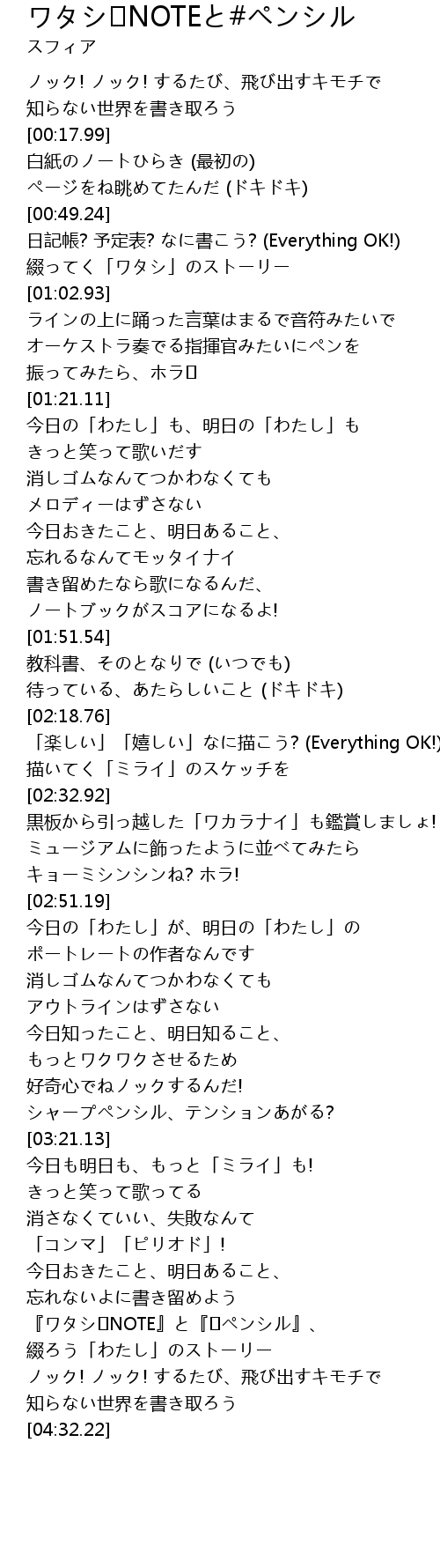 | [04:10.75] | 『ワタシ♪NOTE』と『♯ペンシル』、 |