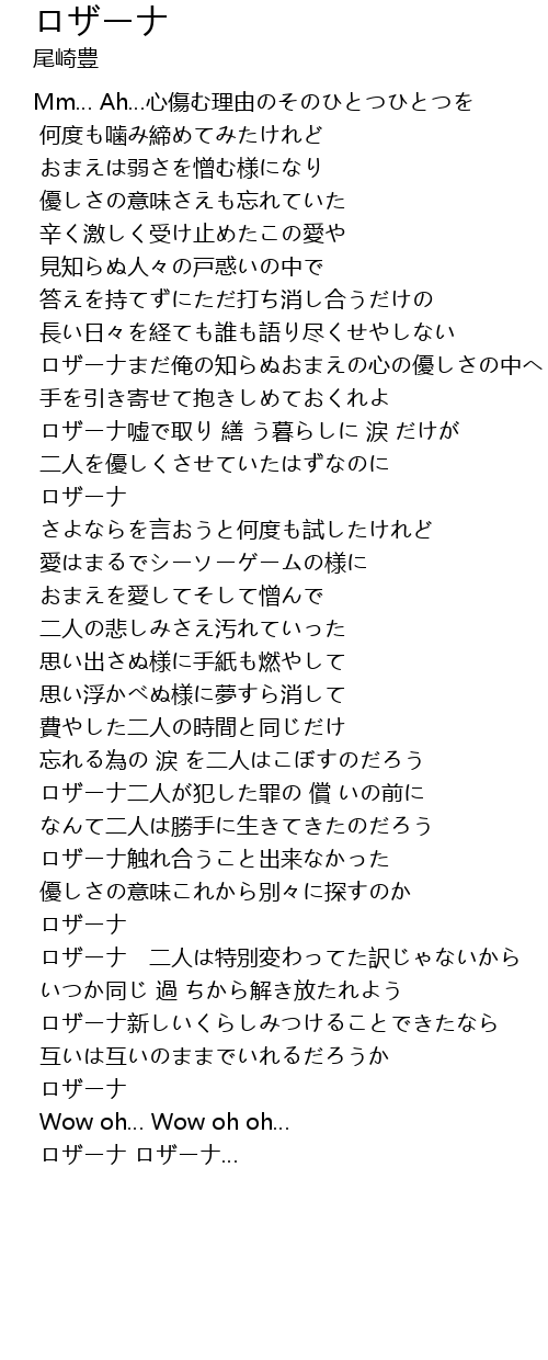| ロザーナ嘘で取り 繕 う暮らしに 涙 だけが | |